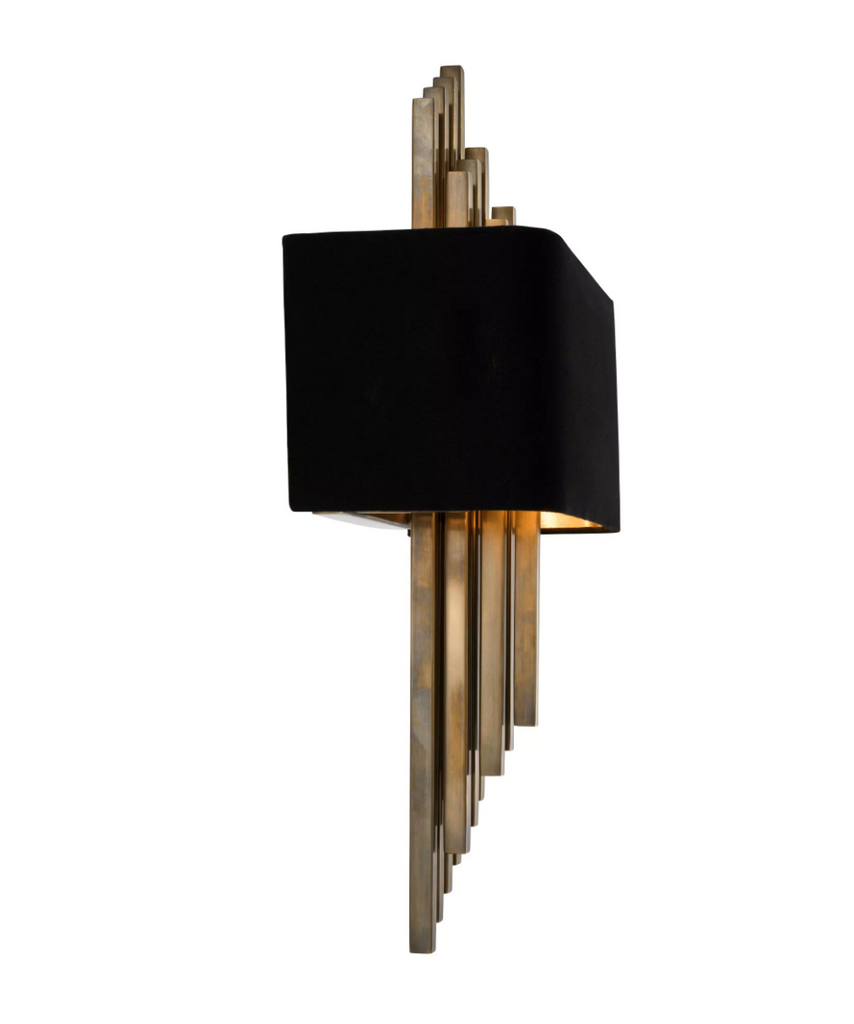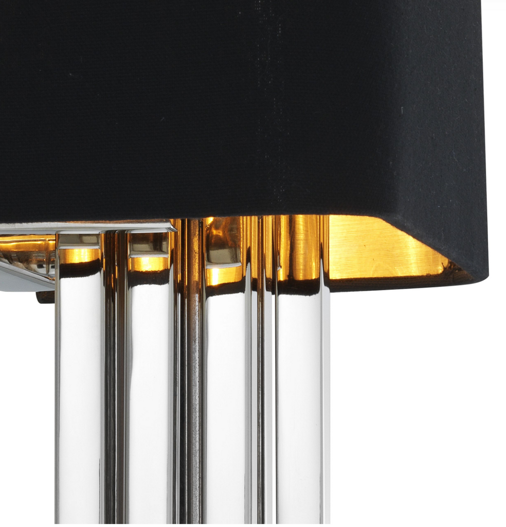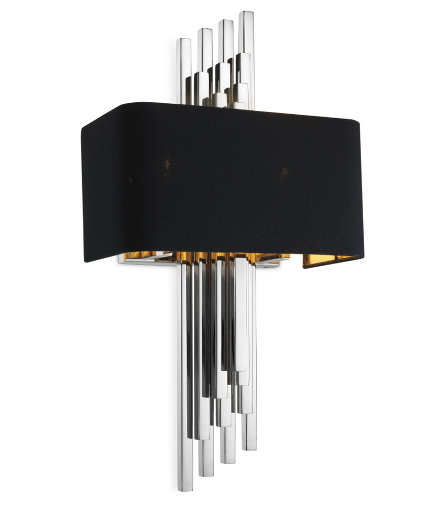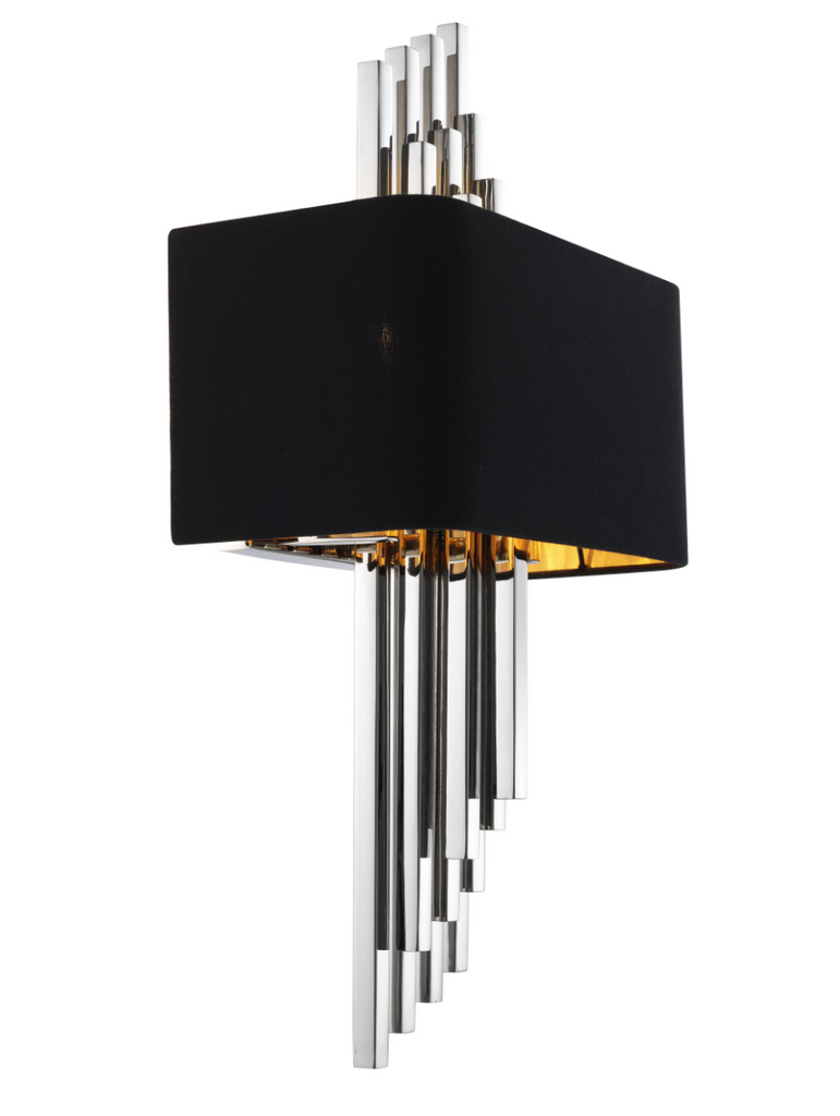 Descrizione: Grazie alla sua struttura scultorea che ricorda uno dei grattacieli fitti, la lampada da parete Caruso trasuda grandezza cosmopolita. Questo apparecchio moderno urbano ha una finitura in nichel e viene fornito con un paralume nero rettangolare abbinato.