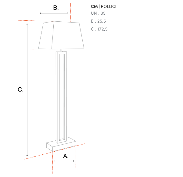 Misure: A. 35 | B. 25,5 | C. 172,5 cm (vedi foto)