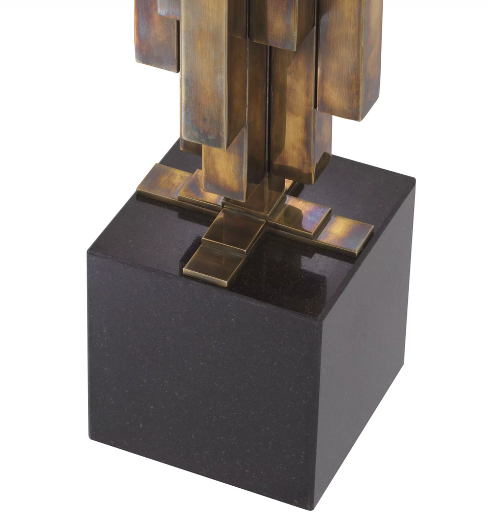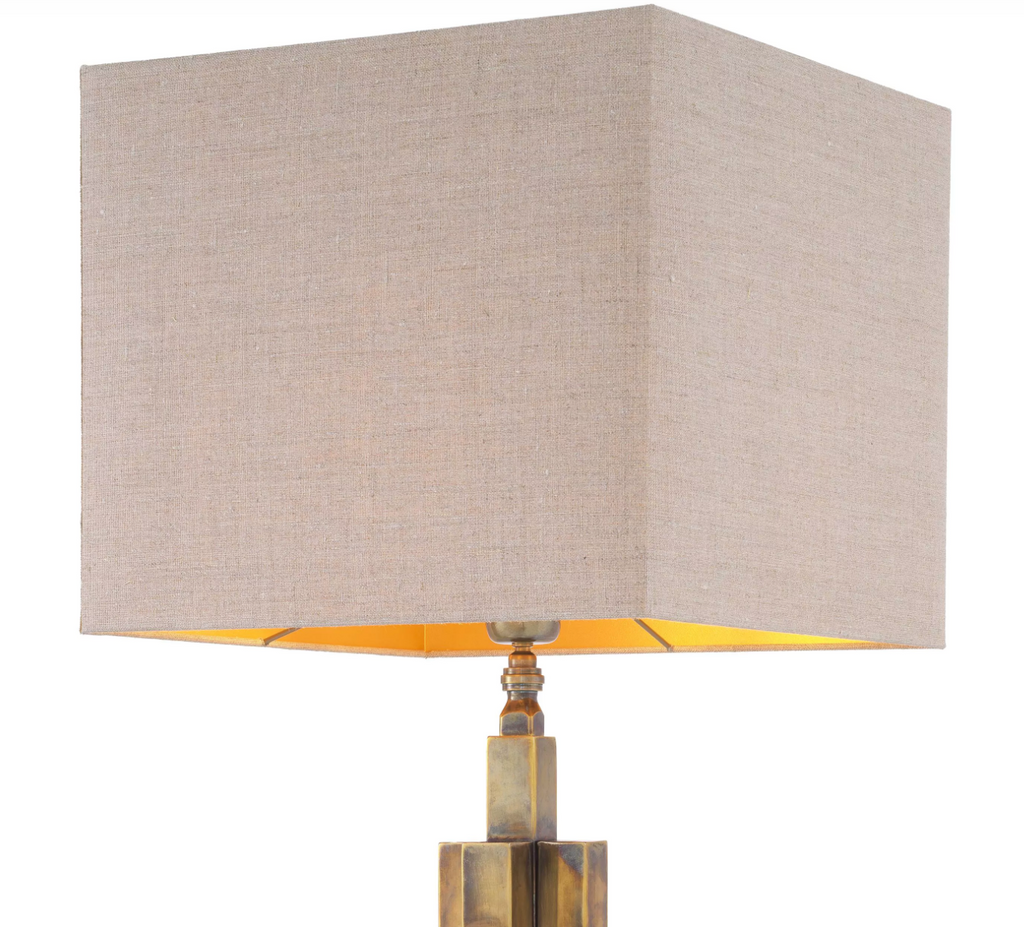Descrizione: Dai ai tuoi interni più di una semplice fonte di luce con la lampada da tavolo Ellis. Caratterizzato da una struttura in acciaio inossidabile con finitura in ottone vintage su un piedistallo a forma di cubo di granito nero, questo apparecchio contemporaneo irradia bellezza scultorea. Il design artistico si completa con un paralume in misto lino.