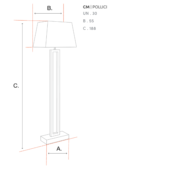 Misure: A. 30 | B. 55 | C. 188 cm (vedi foto)
