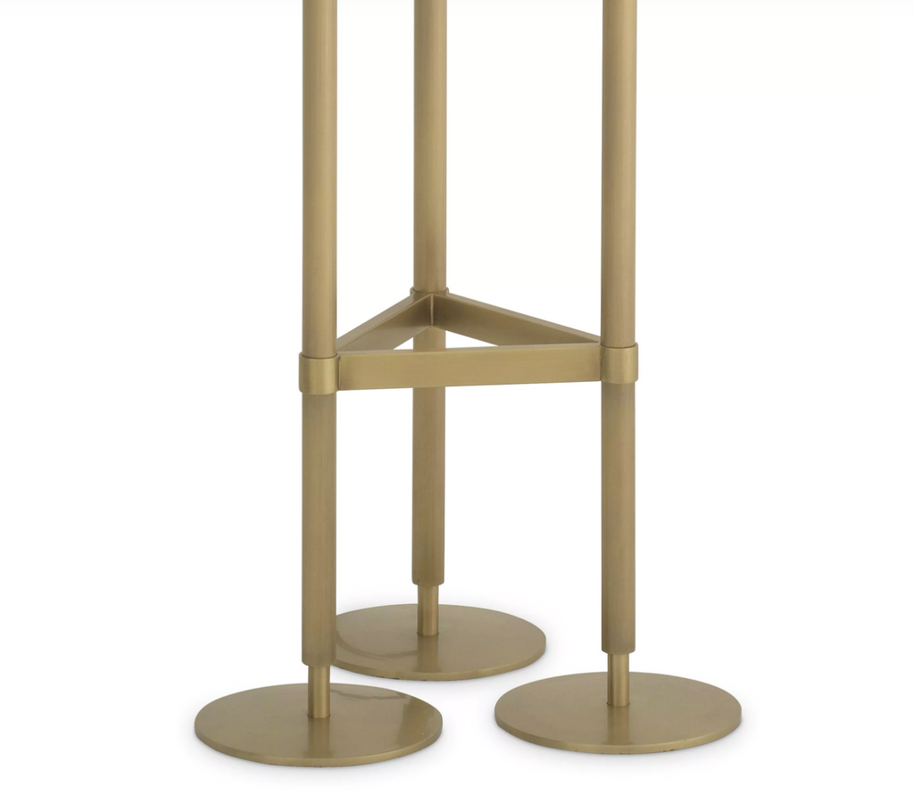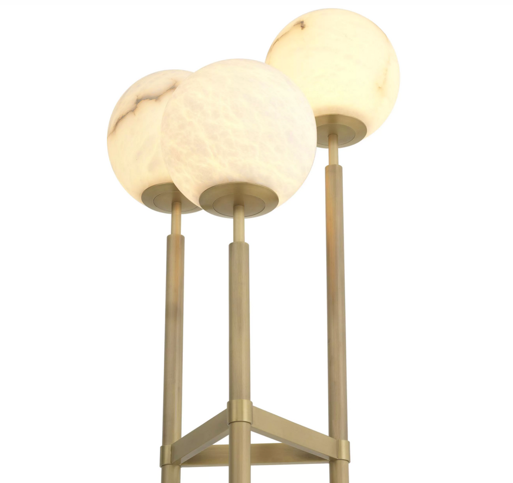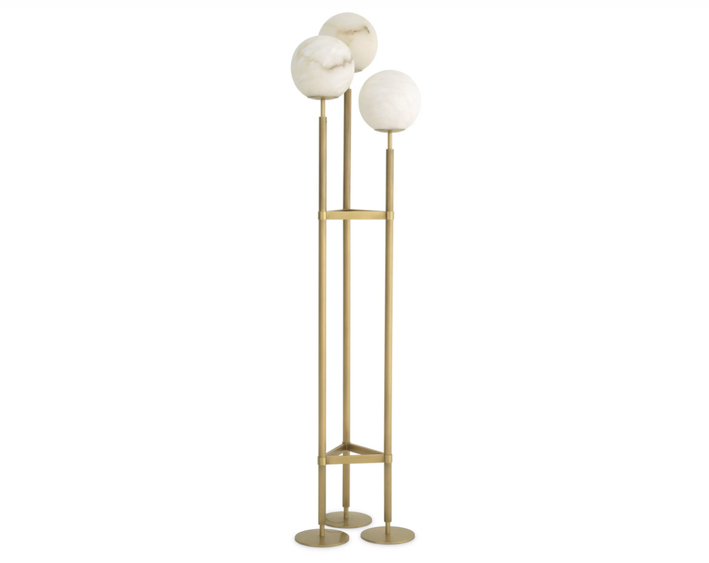 Descrizione: La struttura grafica con finitura in ottone anticato della lampada da terra Fiori mette in risalto i suoi splendidi paralumi in alabastro e offre un'accogliente illuminazione d'ambiente. Assicurati di rendere giustizia al suo bellissimo design Art Déco posizionandolo in una posizione visibile privilegiata nel tuo salotto, camera da letto o ufficio domestico.