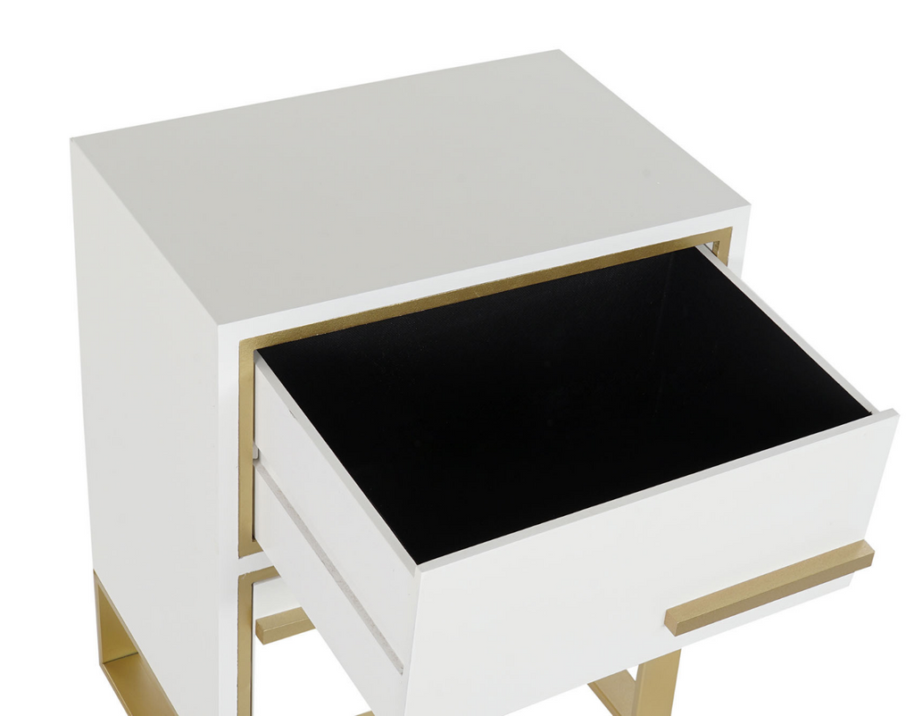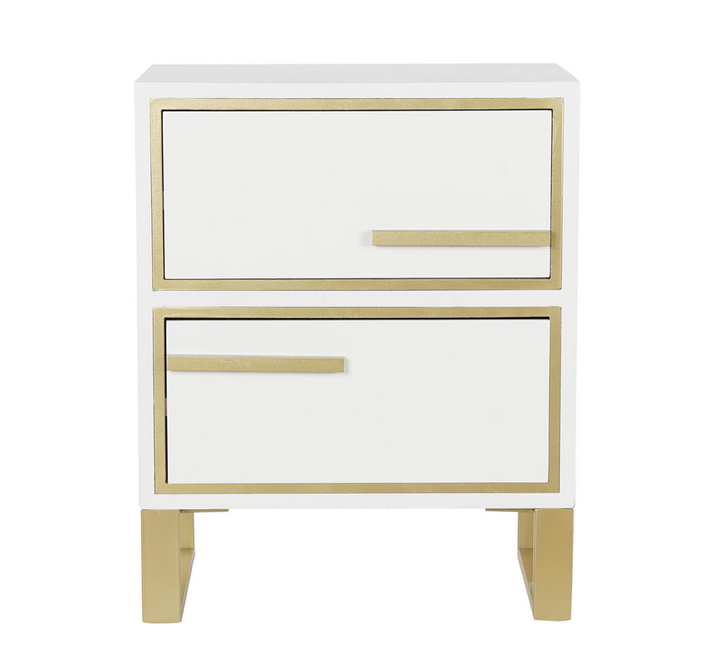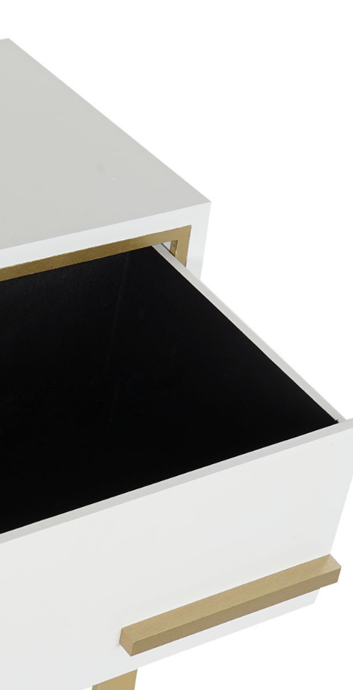 Descrizione: Elegante comodino bianco con dettagli in oro.