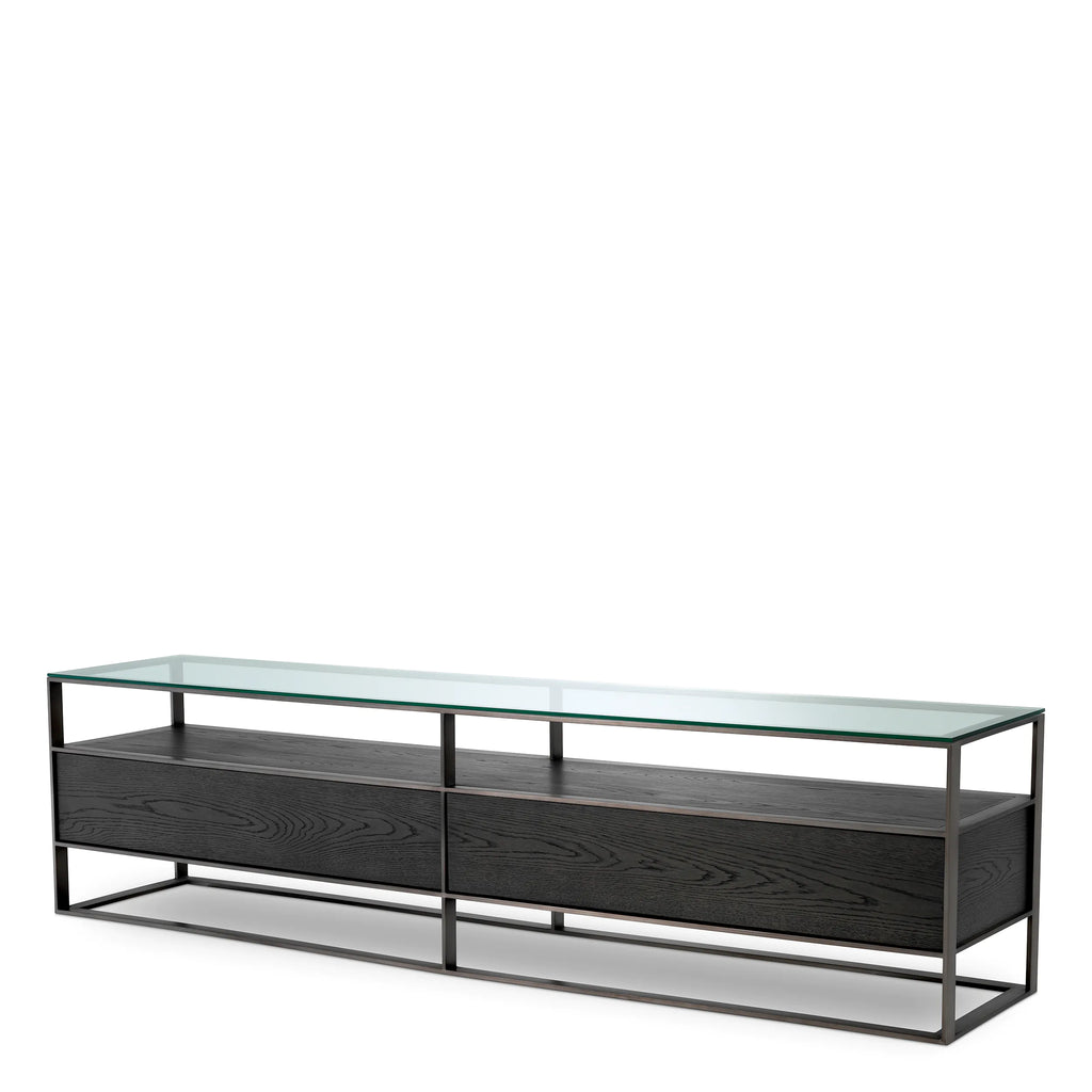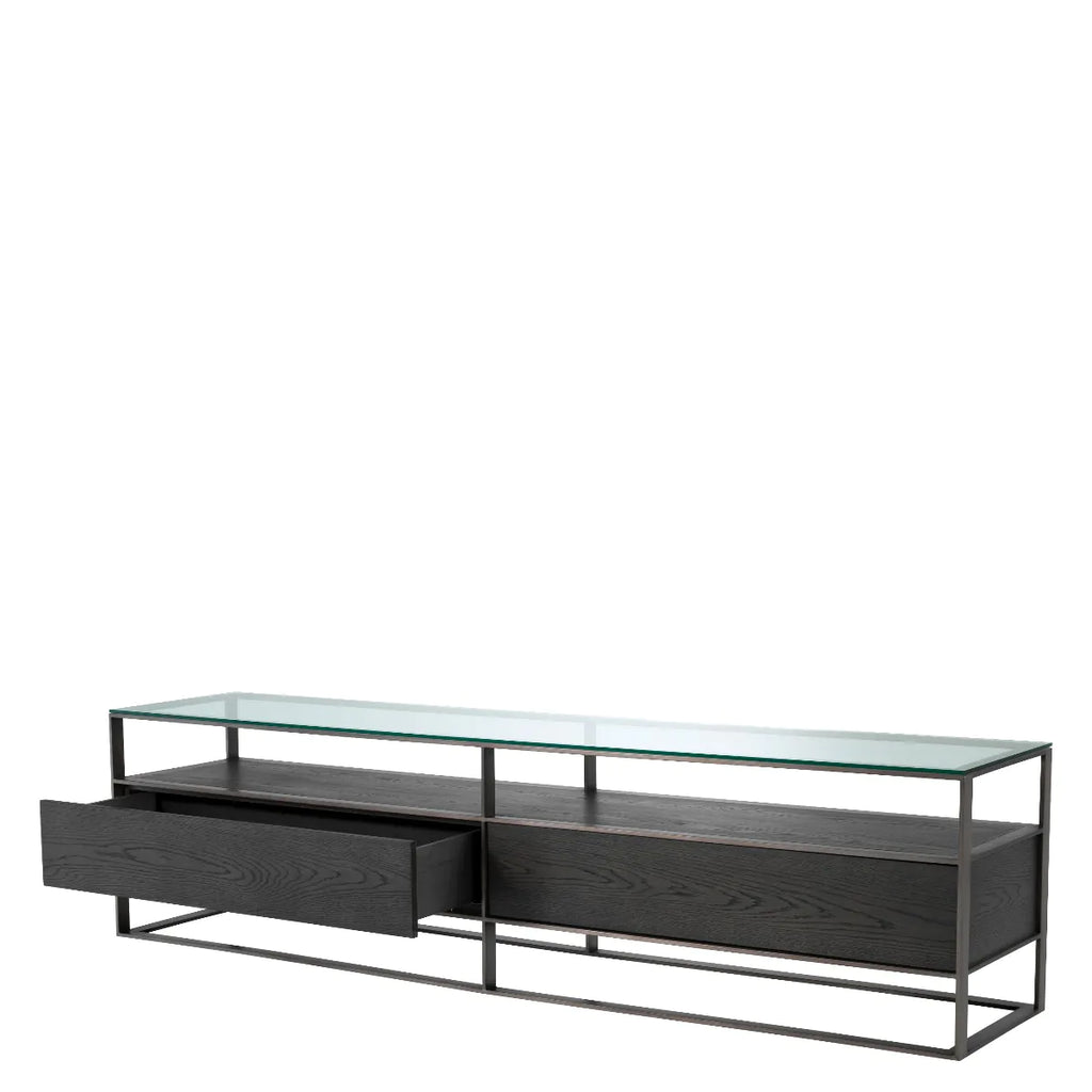 Le linee pulite, il metallo scuro e l'impiallacciatura di rovere conferiscono a questo pezzo un fascino industriale. Con due ampi cassetti e un ripiano, questo mobile è ideale anche per riporre console di gioco, impianto audio e apparecchiature video.