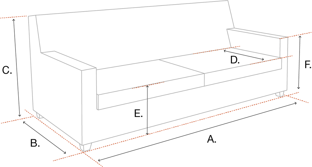 Dimensioni: A. 240 | B. 96 | C. 74,5 | D. 65 | E. 44 | F. 60 cm