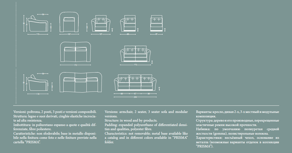 Versioni: poltrona, 2 posti, 3 posti e versioni componibili.