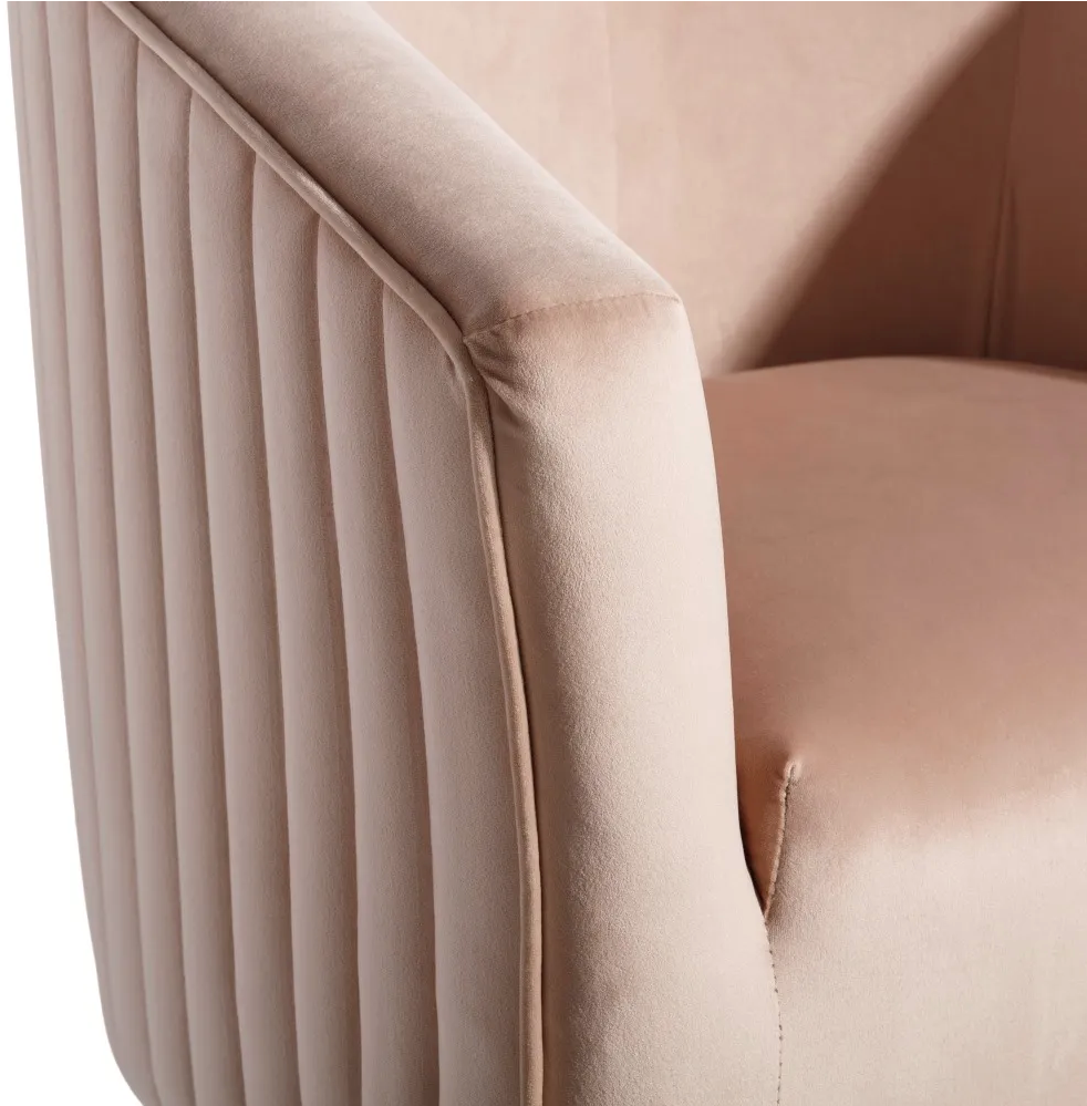 Descrizione: La poltrona Rosa porterà raffinatezza ed eleganza nel tuo salotto con il suo rivestimento in velluto. Caratterizzata da un design leggermente curvo e cuciture profonde, questa deliziosa poltrona ti offrirà una seduta molto confortevole.